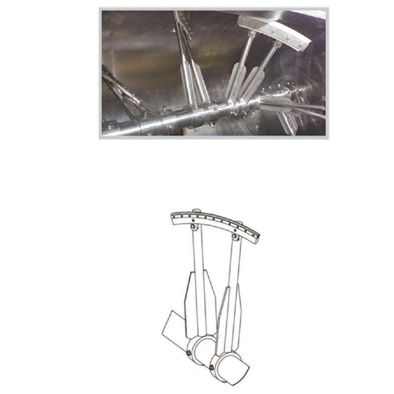 2.攪拌軸的槳葉上帶有刮壁,能使筒壁及筒壁兩側干凈無余料。