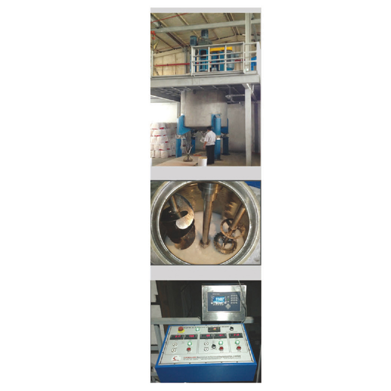 適用于高粘度涂料、油墨、膠黏劑、膩?zhàn)印⒃踊?、真石漆等化工產(chǎn)品的攪拌混合。其機(jī)構(gòu)為:低速運(yùn)轉(zhuǎn)的蝶形攪拌器使物料在缸內(nèi)翻動(dòng)和混合,高速運(yùn)轉(zhuǎn)的齒形分散盤與混合的物料產(chǎn)生強(qiáng)烈的剪切,是聚集物迅速達(dá)到混合、分散、溶解的要求。在其高低速的不同作用下,使物料能夠達(dá)到均勻的混合分散。